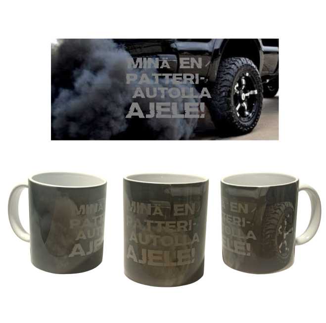 Minä en patteriautolla ajele -muki