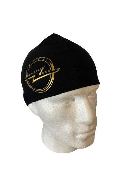 Opel, kultaisella painatuksella. Trikoopipo, lyhyt malli
