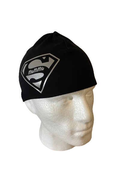 Super Mummu, heijastavalla painatuksella. Trikoopipo, lyhyt malli