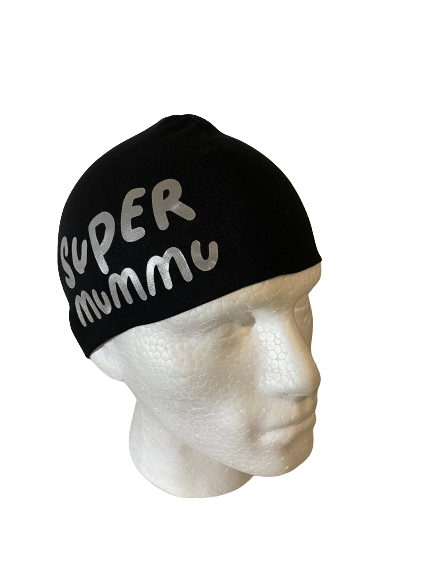 Super Mummu2, heijastavalla painatuksella. Trikoopipo, lyhyt malli