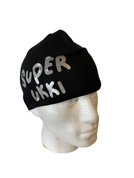 Super Ukki, heijastavalla painatuksella. Trikoopipo, lyhyt malli