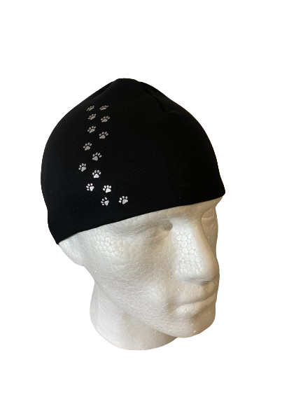Tassunjäljet, heijastavalla painatuksella. Trikoopipo, lyhyt malli